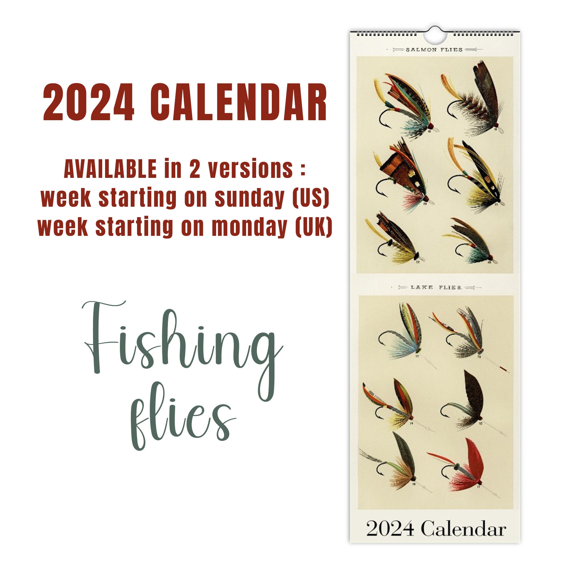 2024 Calendar Fisherman Fly Fishing Bait Silk River Fish Etsy